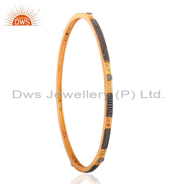 18K Gold Gp Tsavorite Gems Ruby Sterling Sivler Diamond Bangle Bracelet