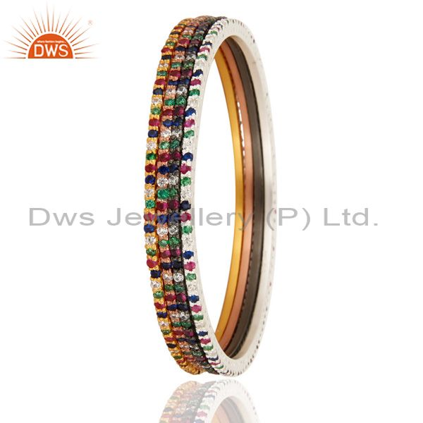 18K Goldplated Sterling Silver Multi-Color Cubic Zirconia-Accent Sleek Bangle