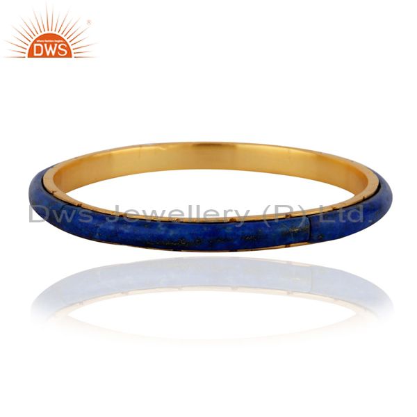 18K Yellow Gold Plated Lapis Lazuli Sleek Bangle Womens Jewelry