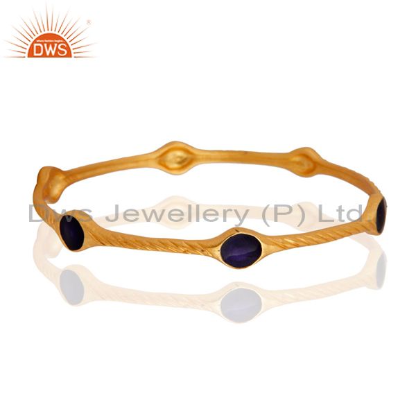 22K Yellow Gold Plated Sterling Silver Blue Enamel Hammered Bangle Bracelet