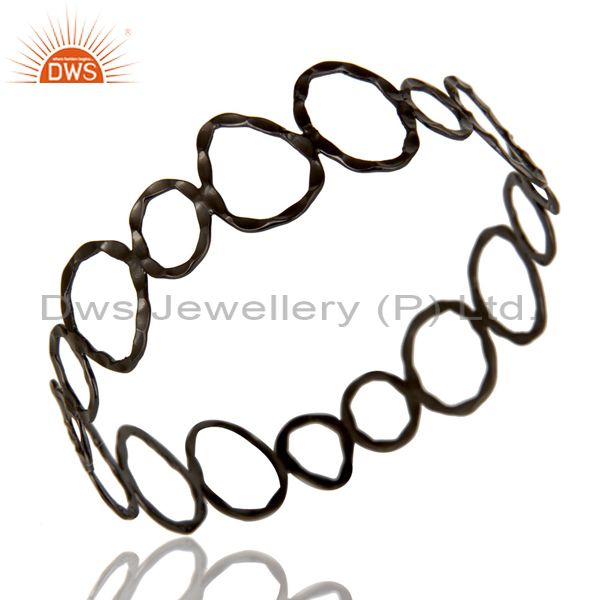 Black Oxidized 925 Sterling Silver Hammered Open Circle Wide Bangle Bracelet