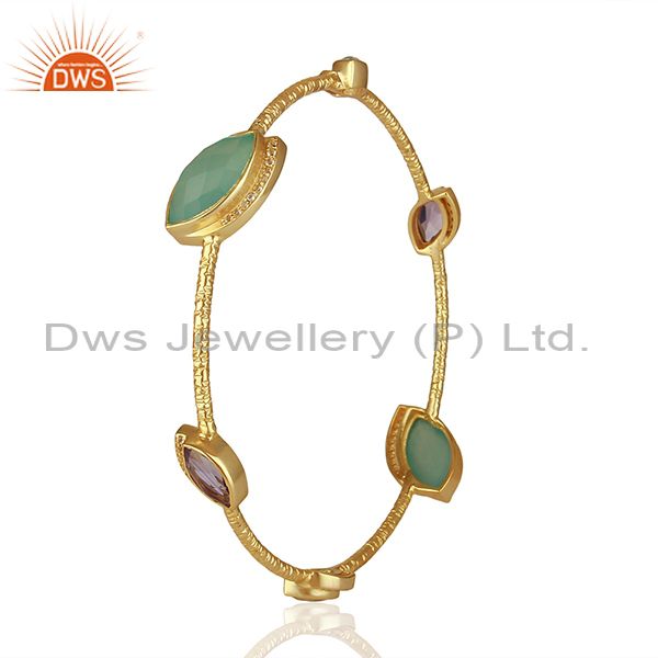 Chalcedony and Cz Gemstone Gold Plated Silver Bangle Manufacturer