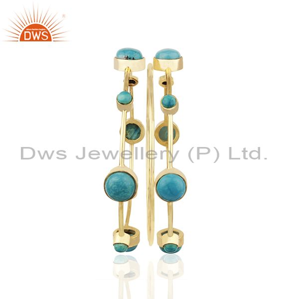 Handmade Gold Plated 925 Silver Turquoise Gemstone Three Bangle Set