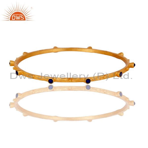 Indian Handmade Blue Sapphire Sterling Silver Bangle Gold Plated Jewelry
