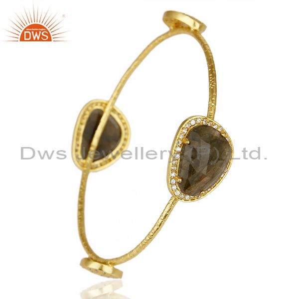 Labrodorite Free Shape Fashion Bangle Studded With Cz Exclusive Jewelry