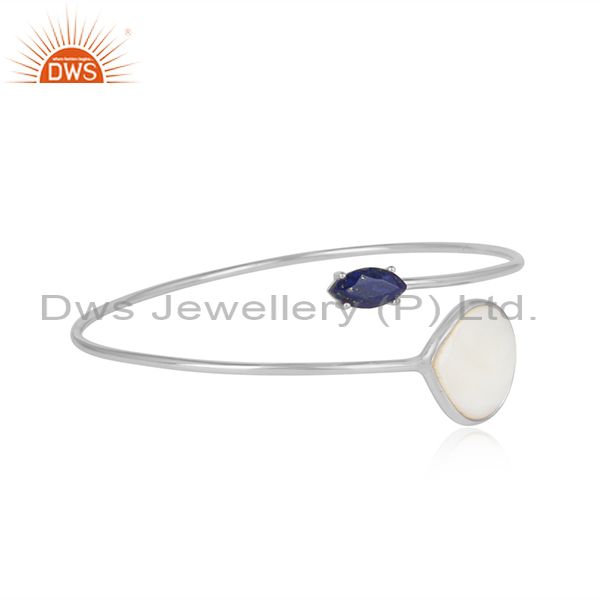 Mother of Pearl Lapis Handcrafted Silver 925 Sleek Bangle