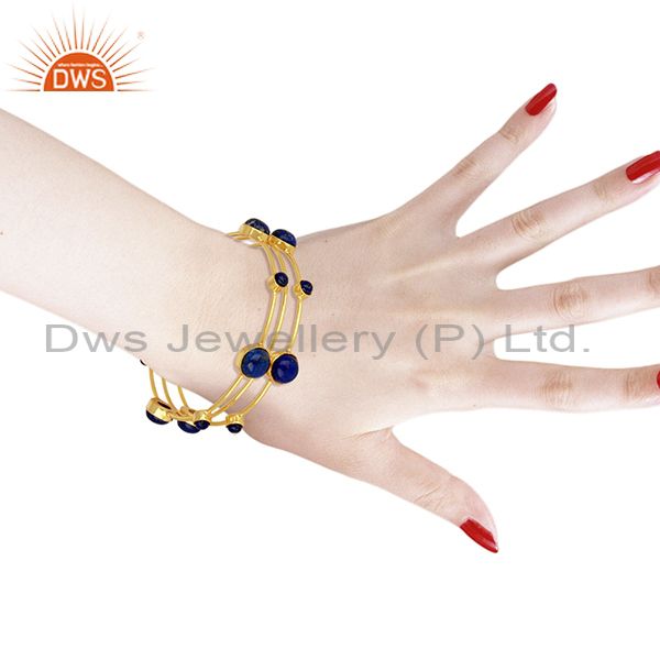 Natural Lapis Lazuli Gemstone Gold Plated 925 Silver Bangle Set