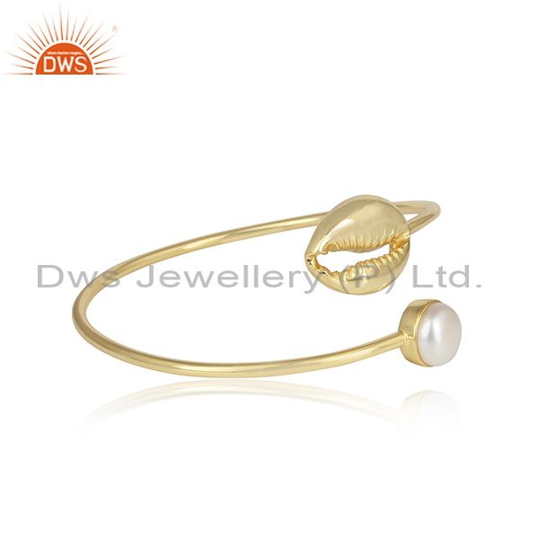 Pearl Set Brass Gold Adjustable Bangle