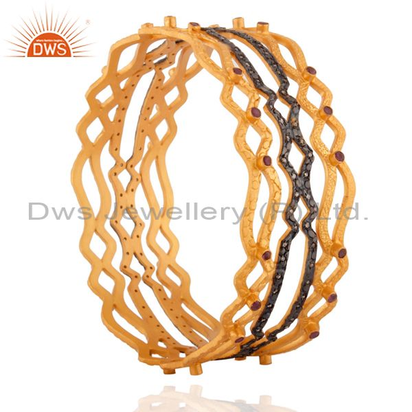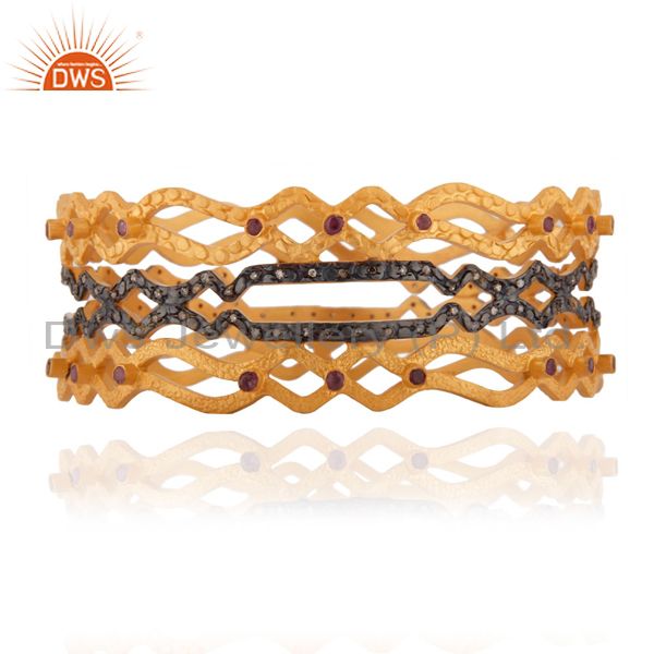 Sterling Silver Studded Diamond 18K Gold Gp Antique Style Handmade Ruby Cuff Ban