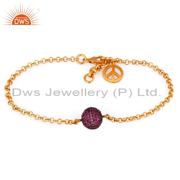 18K Gold Over 925 Sterling Silver Real Ruby Gemstone Lovely Chain Bracelets