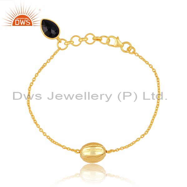18K Yellow Gold Over Sterling Silver Black Onyx Designer Chain Bracelet