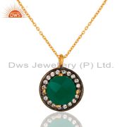 18K Yellow Gold Plated Green Onyx Gemstone & Cz Sterling Silver Chain Bracelet
