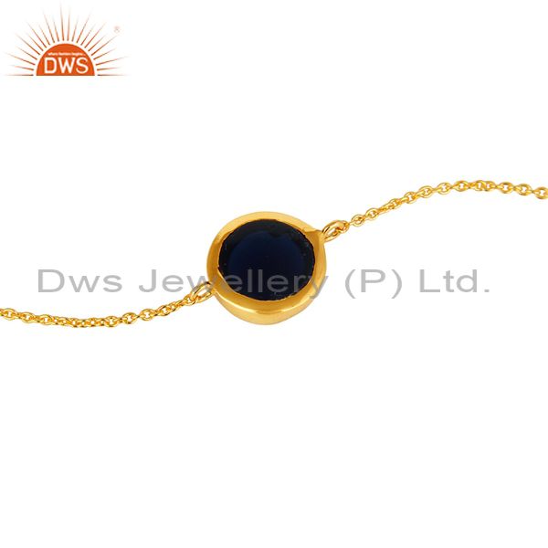 18K Yellow Gold Plated Sterling Silver Blue Corundum Gemstone Bracelet With Chai