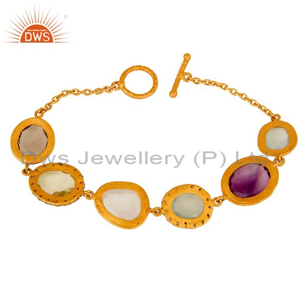 22K Yellow Gold Plated Sterling Silver Multi Colored Gemstone Bracelet With Cz
