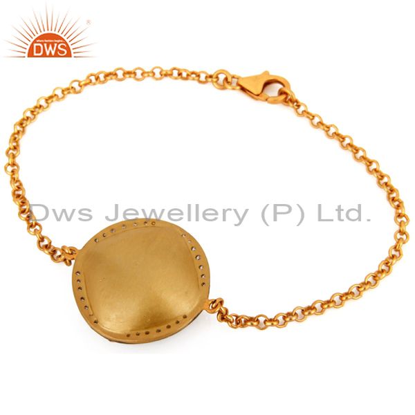 925 Sterling Silver Smoky Quartz Gemstone Gold Plated Chain Bracelets With Cz