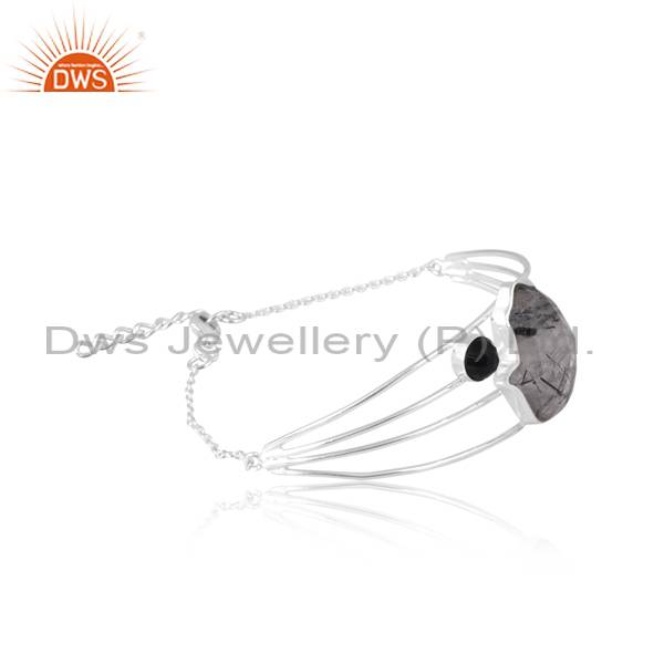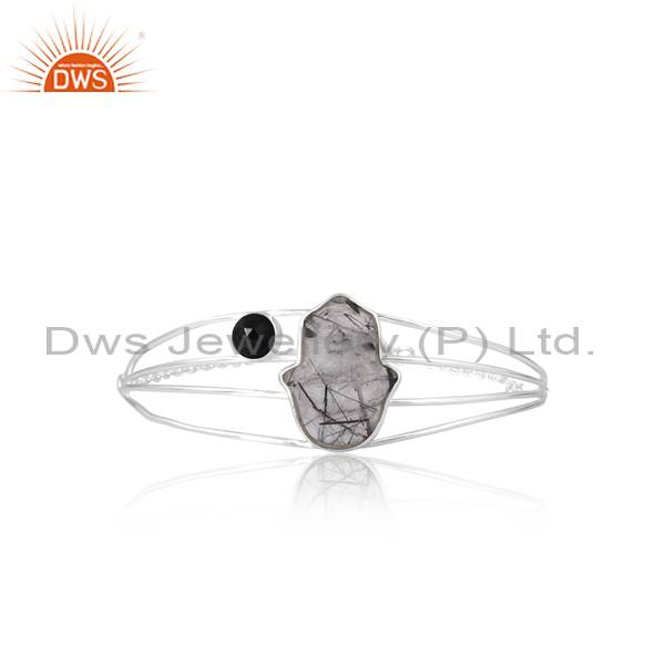 Black Rutile Hamsa Bracelet: Elegant Protection - Black Onyx