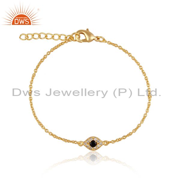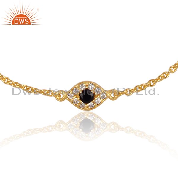 Cz And Black Onyx Evil Eye Charm Set Brass Gold Bracelet