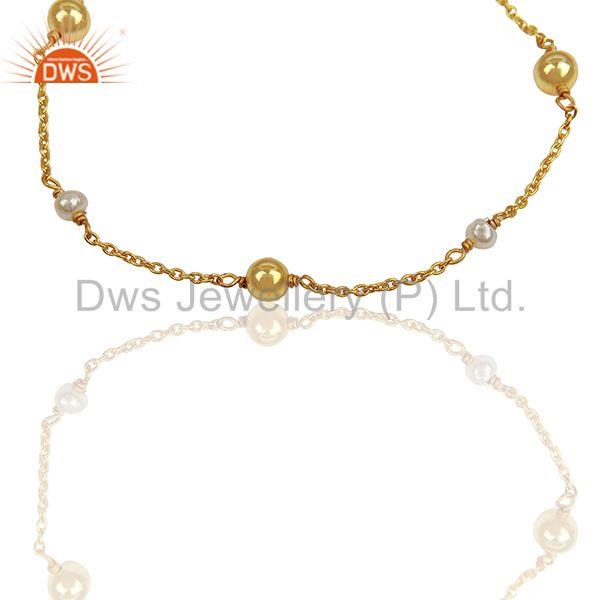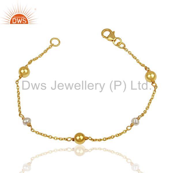 Designer Roung Pearl and Solid Silver Ball Beads Gold Plated Bracelet