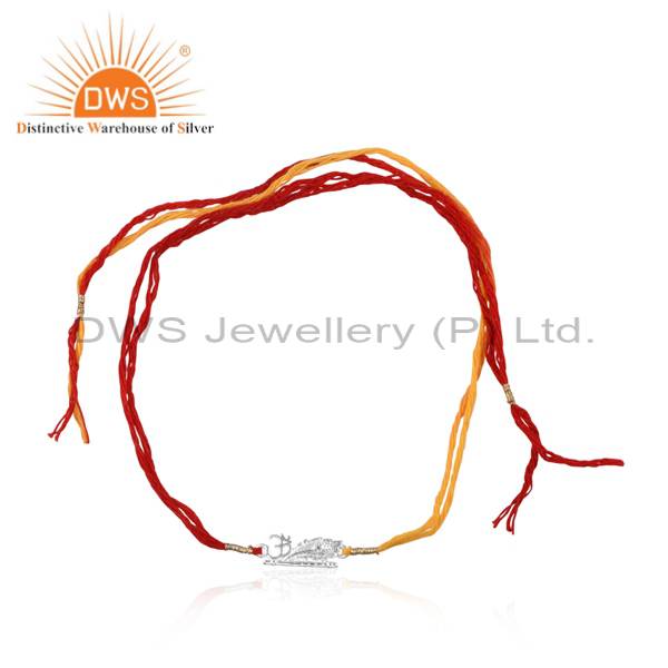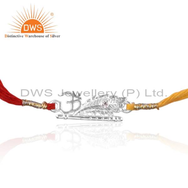 Elegant Silver Om Peacock Wing Rakhi Bracelet