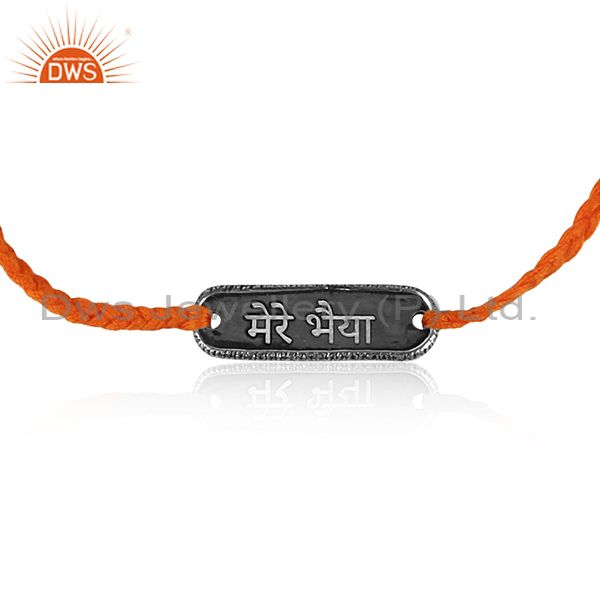 Embossed Oxidized Silver Charm Chrome Cotton Dori Bracelet