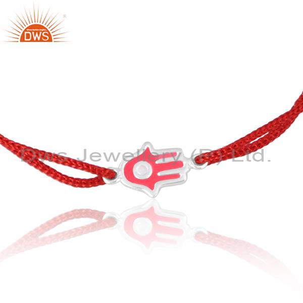 Enamel Hamsa Hand Bracelet: Sterling Silver, Dark Red Dori