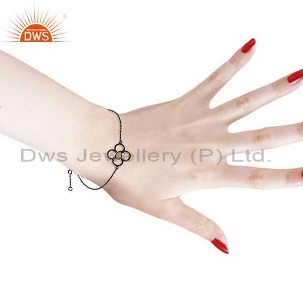 Golden Rutile 925 Sterling Silver Black Rhodium Plated Gemstone Bracelet