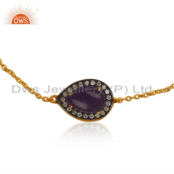 Natural Aventurine Gemstone Silver Gold Plated Chain Bracelet Jewelry