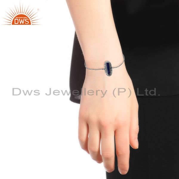 New Texture Oxidized 925 Silver Lapis Lazuli Gemstone Chain Bracelet