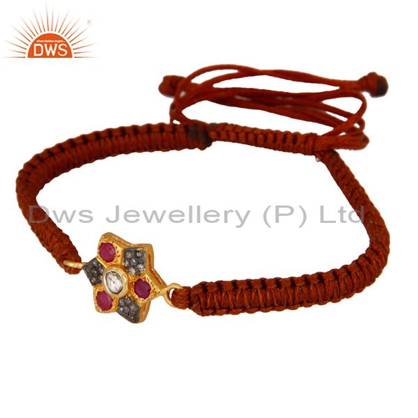 Pave Diamond Sterling Silver Ruby Stone Charm Macrame Bracelet Fashion Jewelry