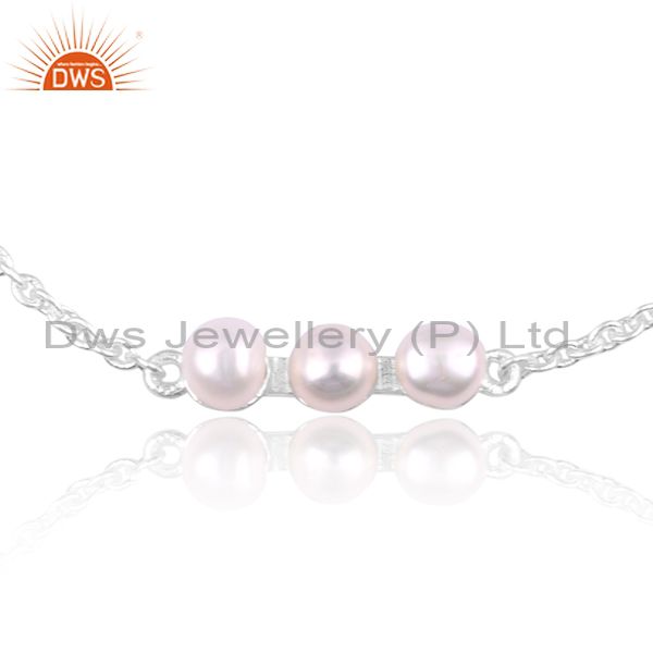 Pearl Chain Link 925 Sterling Silver Handmade Design Bracelet Jewelry