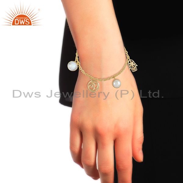 Pearl with Om Charms 18k Gold Plated Brass Fashion Jewellery Bracelet