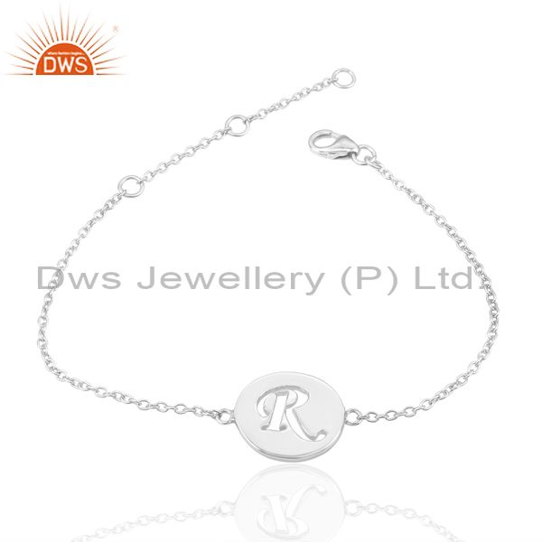 R Initial Sleek Chain 92.5 Sterling Silver Wholesale Bracelet