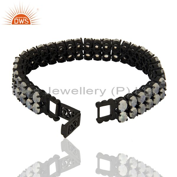 Rainbow Moon Stone Tennis Sterling Silver Black Rhodium Plated Bracelet