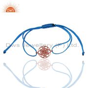 Flower Of Life 925 Sterling Silver Rose Gold Plated Darkblue Silk Thread Pendant