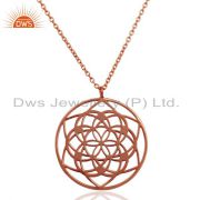 Flower Of Life 925 Sterling Silver Rose Gold Plated Sky Blue Silk Thread Pendant