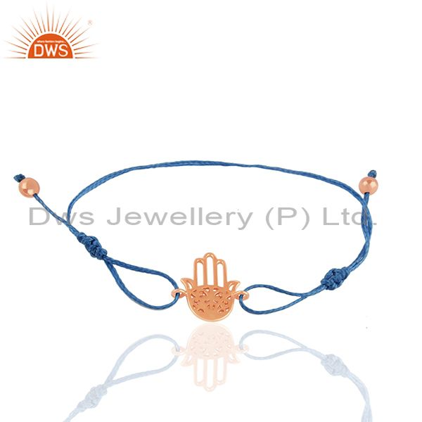 Rose Gold Plated 925 Silver Hamsa Charm Blue Macrame Unisex Bracelet
