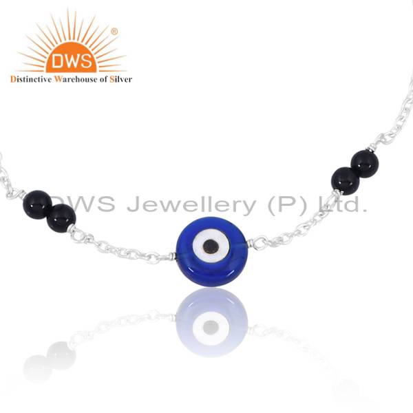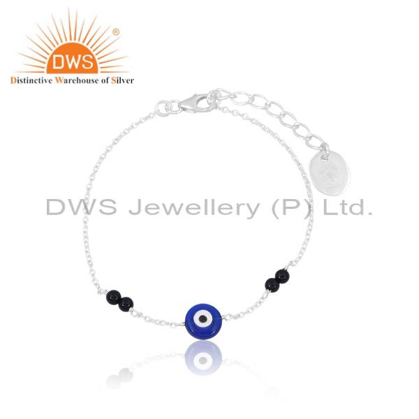 Stunning Blue Onyx & Resin Coin Evil Eye Bracelet