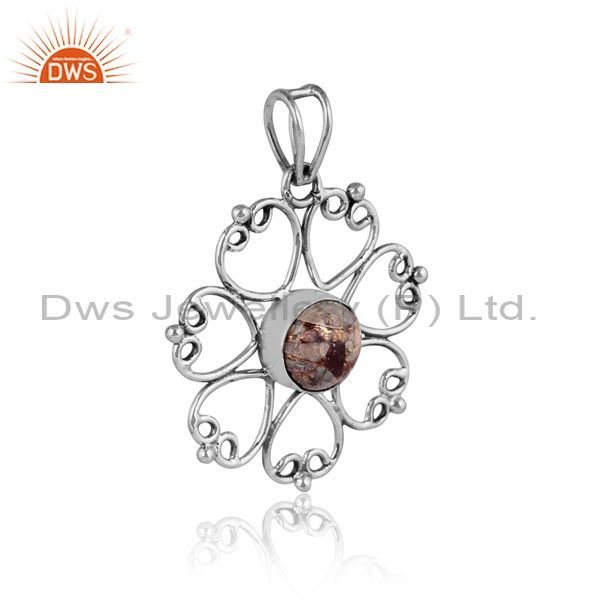 Mojave Copper Ethiopian Opal Set Oxidized 925 Silver Pendant