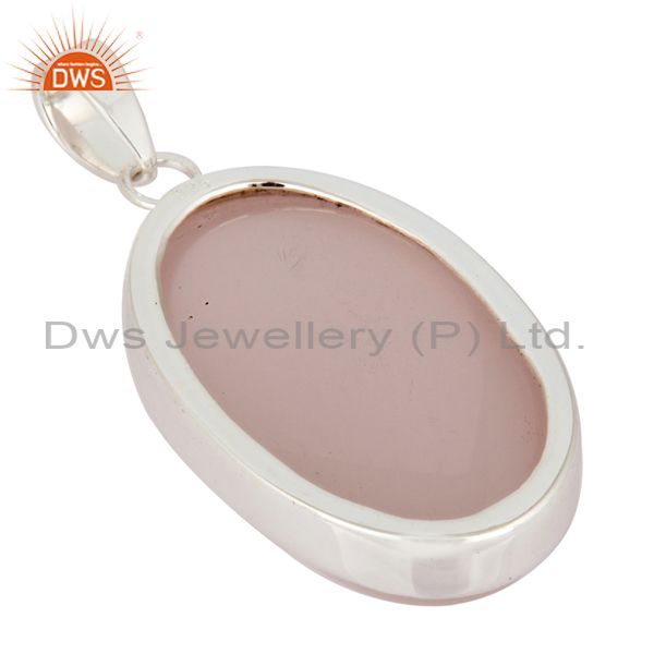 Natural Rose Quartz Gemstone Bezel-Set Solid Sterling Silver Pendant