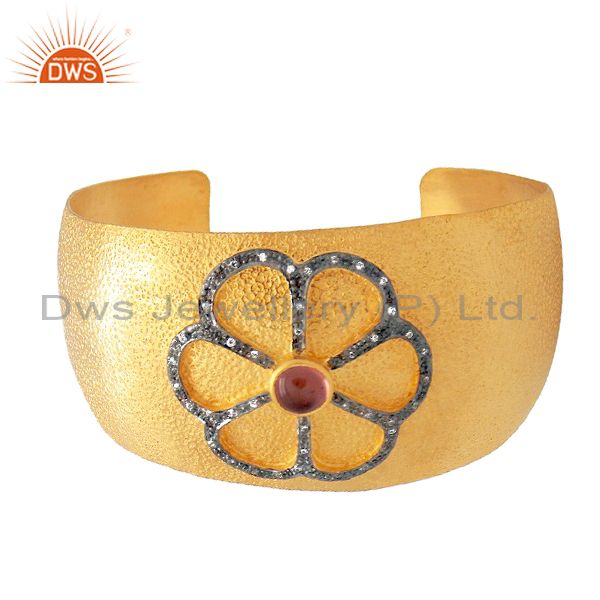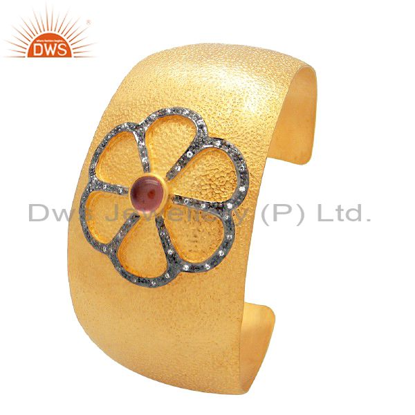 18K Yellow Gold Plated Sterling Silver Cz And Tourmaline Hammered Cuff Bracelet