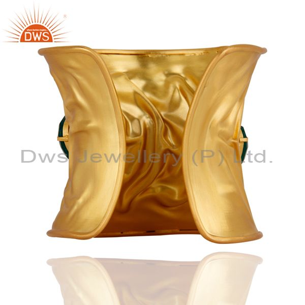 24K Yellow Gold Plated Brass Green Onyx Handmade Wide Cuff Bracelet Bangle