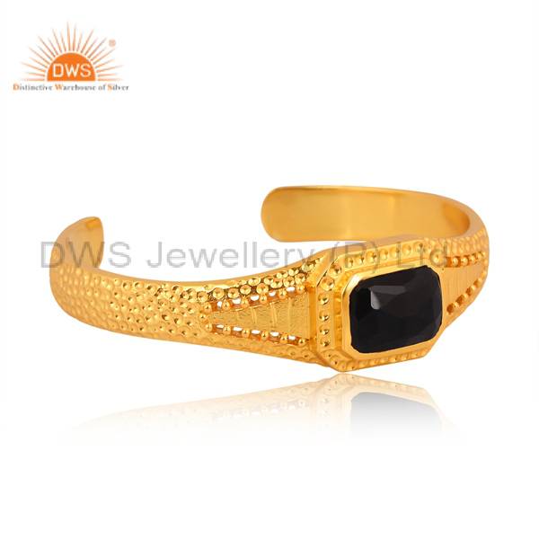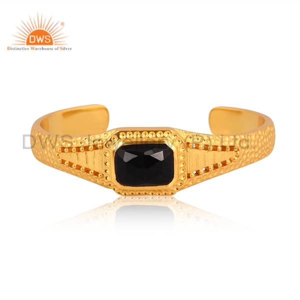 Capricorn Black Onyx Brass Cuff - Zodiac Jewelry Gift