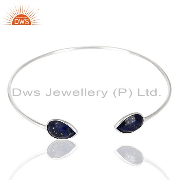 Lapis Adjustable Openable White Rhodium 92.5 Sterling Silver Bangle
