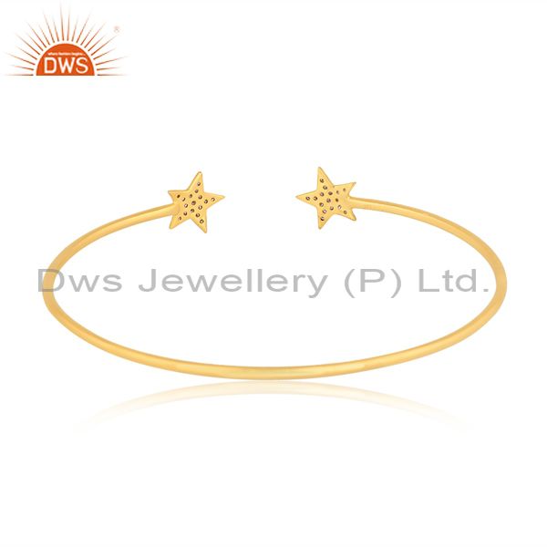 Pave Set Diamond Star Adjustable Open Bangle Made In 14K Yellow Gold Over Silver