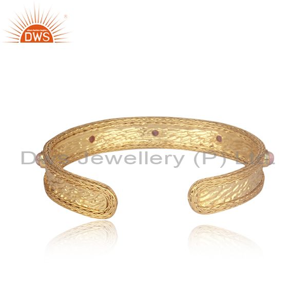 Rhodochrosite Gold On 925 Silver Designer Mesh Cuff Bangle