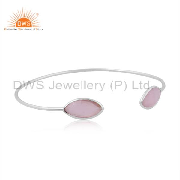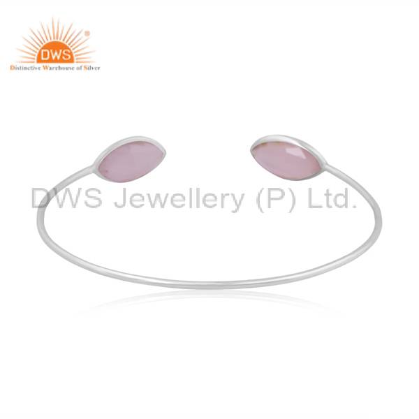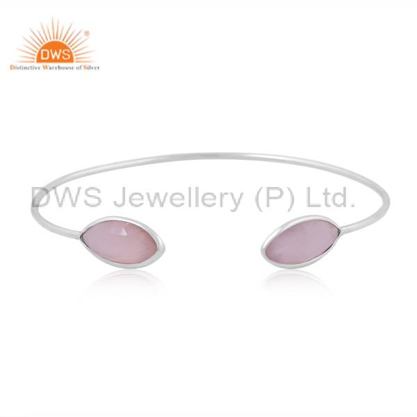 Sterling Silver White Cuff With Elegant Rose Chalcedony