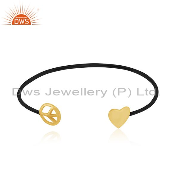 Yellow Gold Plated 925 Silver Heart Peace Charm Cuff Bracelet Manufacturer India