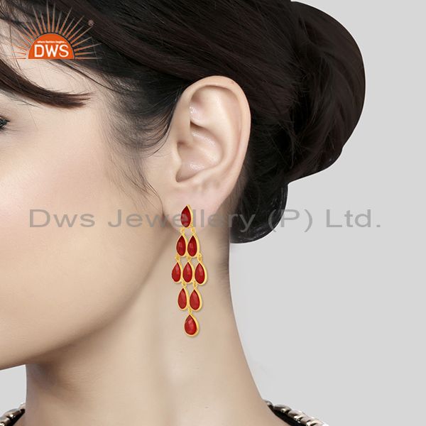 14k Gold Plated 925 Silver Red Onyx Gemstone Earring Manufacturers