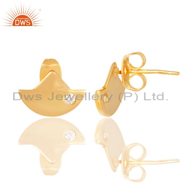 14K Gold Plated 925 Sterling Silver Handmade White Zirconia Studs Earrings