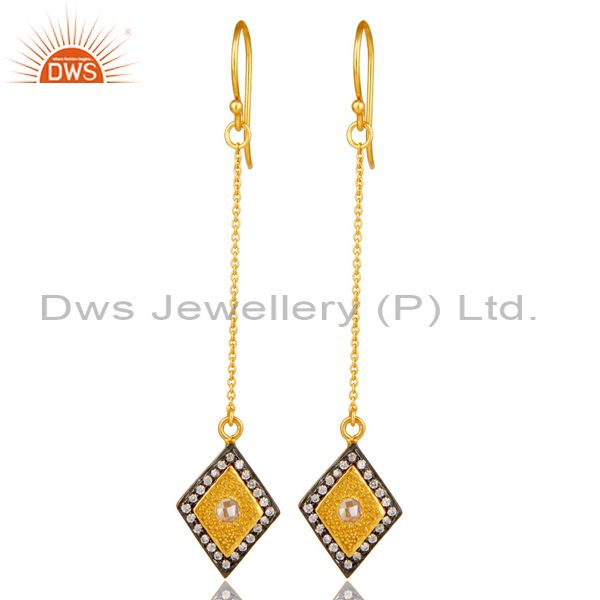 14K Yellow Gold Plated Sterling Silver Cubic Zirconia Chain Dangle Earrings